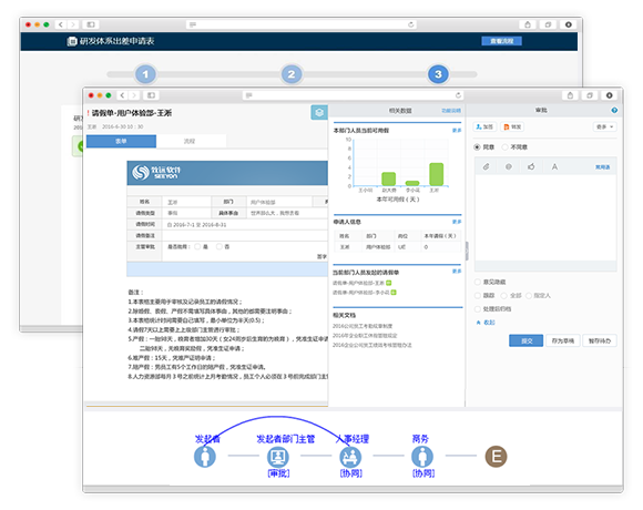 流程仿真技术:业内唯一实现完整流程仿真,模拟组织运营情况, 流程表单自动流转,一键监测节点和分支异常,人员离职、 部门调整时快速实现流程准确调整