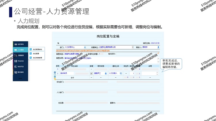 完成岗位配置,则可以对各个岗位进行定员定编,根据实际需要也可新增、调整岗位与编制。