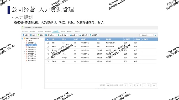 通过组织机构设置,人员的部门、岗位、职级、权责等都规范、明了。