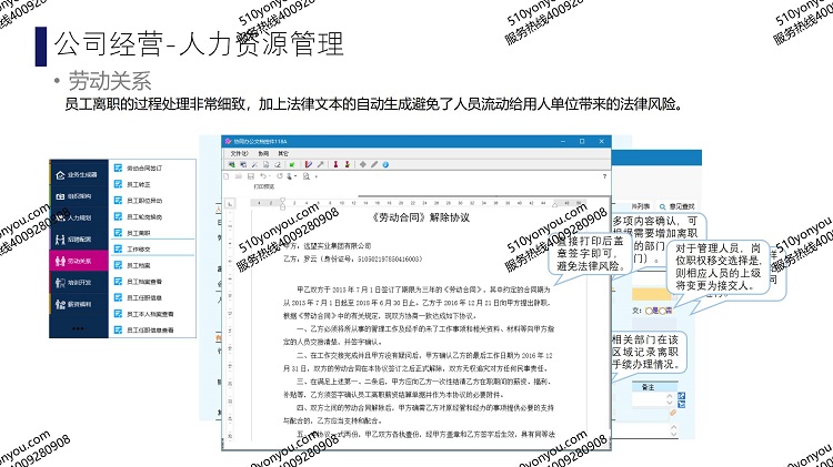 员工离职的过程处理非常细致,加上法律文本的自动生成避免了人员流动给用人单位带来的法律风险。