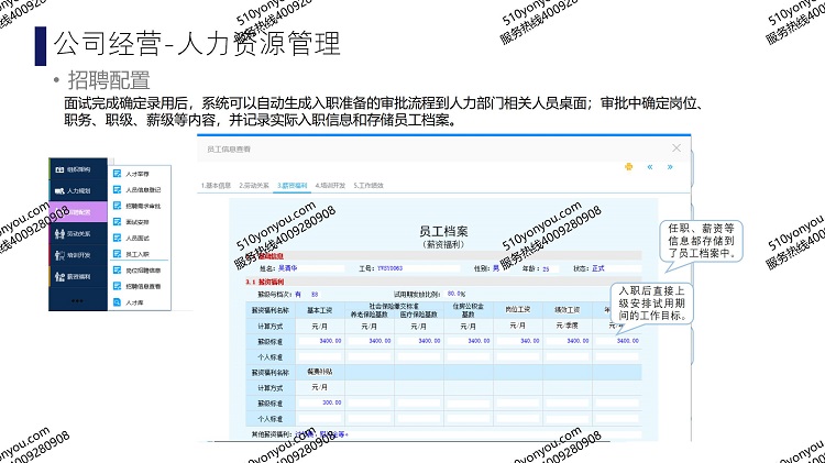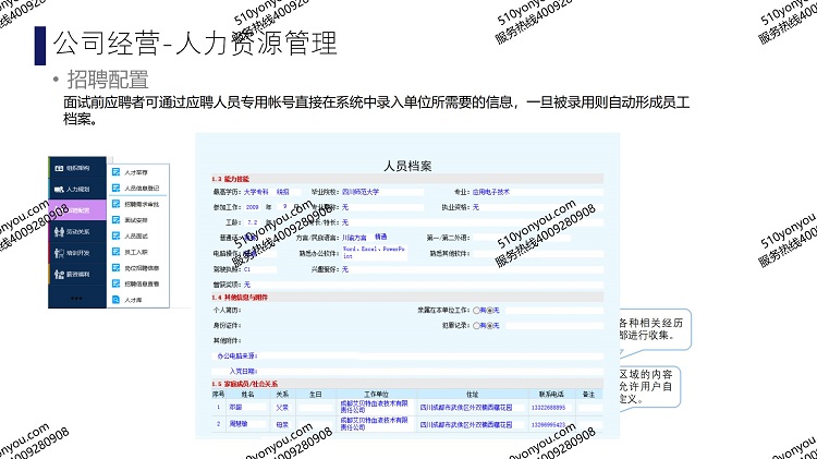 面试前应聘者可通过应聘人员专用帐号直接在系统中录入单位所需要的信息,一旦被录用则自动形成员工档案。