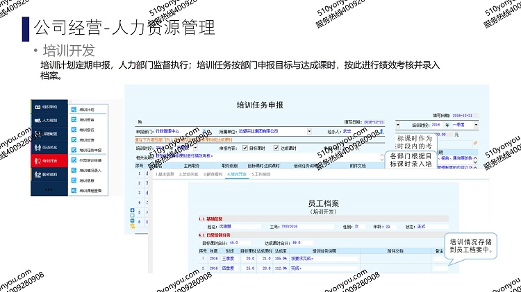 培训计划定期申报,人力部门监督执行;培训任务按部门申报目标与达成课时,按此进行绩效考核并录入档案。