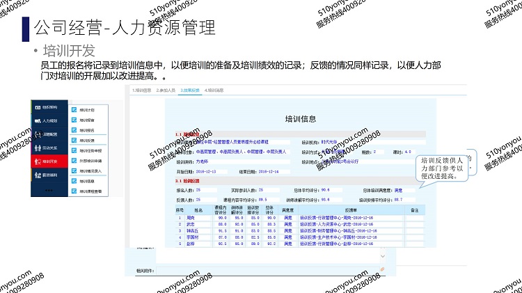员工的报名将记录到培训信息中,以便培训的准备及培训绩效的记录;反馈的情况同样记录,以便人力部门对培训的开展加以改进提高。