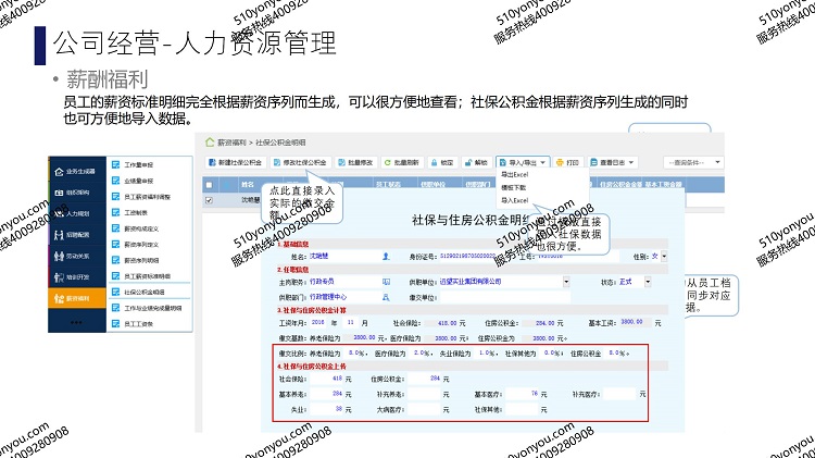 员工的薪资标准明细完全根据薪资序列而生成,可以很方便地查看;社保公积金根据薪资序列生成的同时也可方便地导入数据。